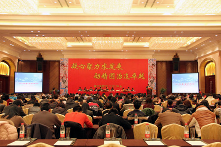 25日,會議第二天的主要議程是工作報告和度先進人員頒獎,由集團常務董事朱玲主持。上午,首先由集團總裁徐平炬為度大會致開幕詞,王彩虹副總裁作了2011年度總體業績報告。隨后,各分公司總經理、賽爾集團高管分別為會發言,并為2011年終所提拔的人員頒發聘書。各分公司總經理匯報了2011年各公司所取得的業績,指出所存在的問題,堅定改進的信念,并確定了2012年的工作目標。下午,集團和各分公司先后頒發了突出貢獻獎、優秀業務獎、最佳服務獎等獎項。最后,本次大會由徐平炬總裁為作總結性報告,大會圓滿落幕。
