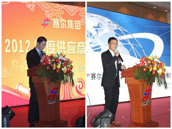 會議開場后,首先由我們賽爾集團總裁,賽爾國貿總經理徐平炬先生進行了開場致辭。然后由賽爾集團義烏優訊進出口總經理錢天風做了精彩的演講。此次演講主要從“賽爾集團2012年整體運營介紹以及2013年發展規劃”兩方面展開,分別展示了賽爾集團的員工情況、業務情況,和各子公司取得的輝煌成績。此次演講使在座的供應商朋友們更加堅定了與賽爾合作的信心和決心,正如現場的一名客戶代表所言,即使不能與賽爾榮歷十五載,也期望能夠與賽爾共同耀動未來!