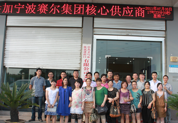 2011年7月5日下午,賽爾集團(tuán)核心供應(yīng)商座談會(huì)在集團(tuán)義烏辦賽爾大樓四樓會(huì)議室舉行。義烏優(yōu)訊進(jìn)出口有限公司總經(jīng)理錢天鋒,集團(tuán)常務(wù)董事、賽爾國貿(mào)業(yè)務(wù)總監(jiān)趙軍一起主持會(huì)議,各公司義烏辦總監(jiān)、集團(tuán)義烏辦樣品室負(fù)責(zé)人王云及義烏蘇米家居有限公司總經(jīng)理董劍等15家供應(yīng)商代表參加了會(huì)議。