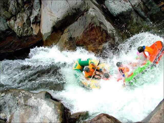 一路上同事們歡聲笑語,到達武義牛頭山時已近晌午,2.5小時的車程早已讓同事們都饑腸轆轆。在享受完牛頭山休閑山莊的農家土菜后,車子沿著蜿蜒崎嶇的山路向目的地神牛谷進軍。繞過險峻的地勢,到達目的地時,大家早已迫不及待的換下衣服拿好裝備,想體驗“浙中第一漂”的驚險與刺激。席間,老天的一場突如其來的大暴雨,特別的慰問了我們一直在崗位上兢兢業業的賽爾同事們。