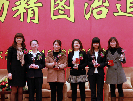 本次會(huì)的頒獎(jiǎng)環(huán)節(jié)于25日下午在義烏幸福湖國(guó)際會(huì)議中心舉行。集團(tuán)和各分公司高層分別對(duì)突出貢獻(xiàn)獎(jiǎng)、優(yōu)秀業(yè)務(wù)獎(jiǎng)、最佳服務(wù)獎(jiǎng)獲得者所作出的突出貢獻(xiàn)和優(yōu)異成績(jī)進(jìn)行表彰并頒發(fā)獎(jiǎng)品獎(jiǎng)杯。謝峰、周君、張明橫、邱濤、王建等榮獲突出貢獻(xiàn)獎(jiǎng),陳為、蔡杰、屠秀靈、邱麗梅、周啟榮、洪媛媛等榮獲優(yōu)秀業(yè)務(wù)獎(jiǎng),周雪娜、張芳芳等榮獲最佳服務(wù)獎(jiǎng)。