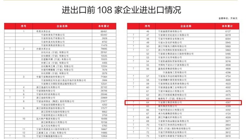 一季度寧波進(jìn)出口108強(qiáng)榜單發(fā)布,我集團(tuán)排名大幅上升
