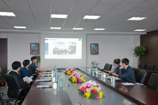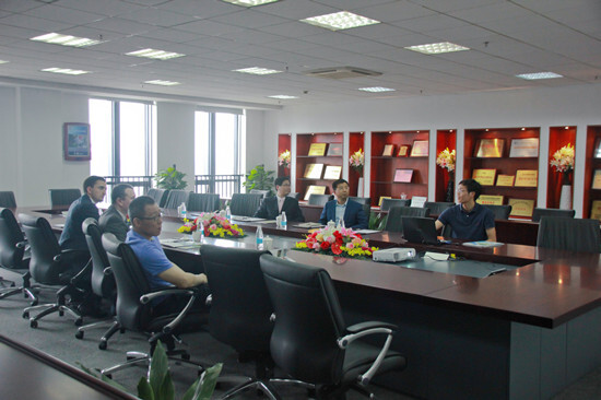 在參觀樣品間后,方總陪同Michal Polanski秘書長參觀了集團寧波研發園辦公區并進行了座談交流。高岳進出口葉陳冬向來訪貴賓簡要介紹了集團發展歷程、企業架構、業務模式、企業文化等情況。
