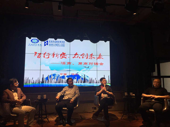 在訪學行將結束之時,由經理學院牽頭組織了一場深商和甬商的對話。深圳特爾佳科技副總孫偉、深圳都會城市研究院院長高海燕 、寧波華展設計院何國平和寧波世紀波斯工具公司魯劍波展開了一場思想的碰撞。大家圍繞著新技術對社會的影響、企業該如何專注發展和跨界發展、如何利用互聯網+的技術實現制造強國的戰略目標等方面展開了熱烈的討論,不斷碰撞出思想的火花。