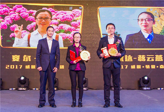 大會首先表彰了集團2016年度優秀員工。賽爾國貿李玲、優達進出口蔣云燕榮獲集團“卓越業績獎”,賽爾國貿朱熙等36人榮獲集團“優秀業務獎”,集團財務管理部洪琳等21人榮獲集團“最佳服務獎”,賽爾國貿孫曉梅等17人榮獲集團“新星獎”,產品在線部和胡波等6個部門或同事分別獲得環宇、優途頒發的物流和旅游業務推介獎。