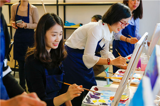 一邊聽著音樂,一邊享用茶歇,一邊創作作品,時很快就過去了。是的,不談工作,不談教學,就是要這么放松。期待2周后我們的陶藝油畫成品。