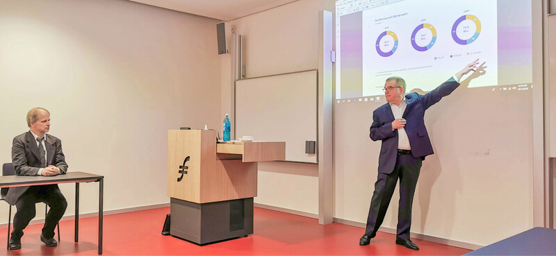 上午在歐洲知名商學院法蘭克福金融管理學院聽課,學院Stoll教授為大家作《歐洲零售業現狀及發展趨勢》專題講座,與大家分享了歐洲及德國經濟發展、居民收入與儲蓄、消費需求變化、零售業態演變等情況,Stoll教授既在學院授課,又自己創辦了一家零售企業,同時作為歐洲零售協會的專家,對歐洲零售業發展可謂了然于胸,課堂上的交流也是相當熱烈。