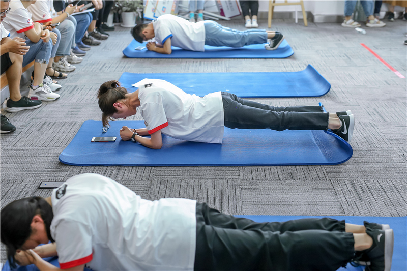 一飛沖天(垂直彈跳) 運籌帷幄(毽子飛舞) 撐天拄地(平板支撐)