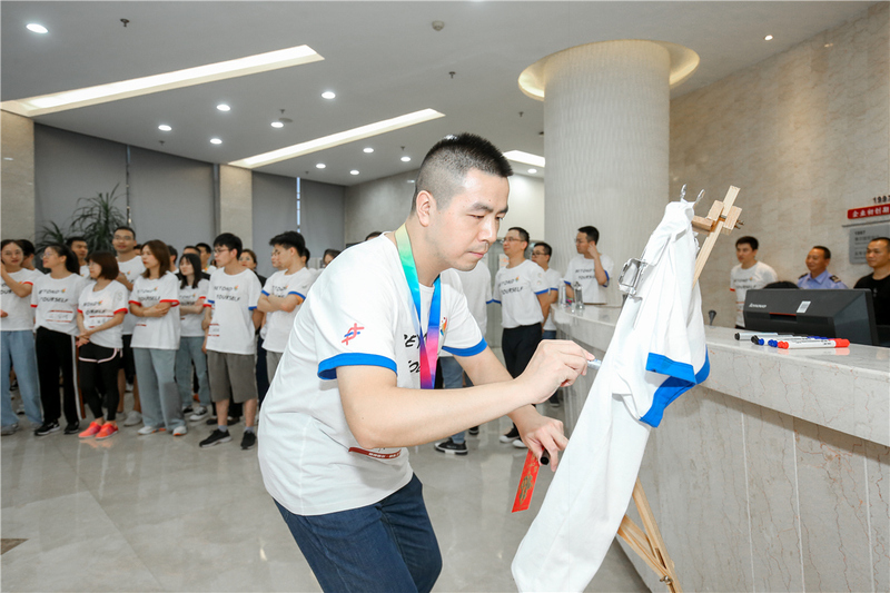 冠軍簽字是本屆運動會新增的環節,多摸摸這件衣服說不定還能增加點運動細胞哦