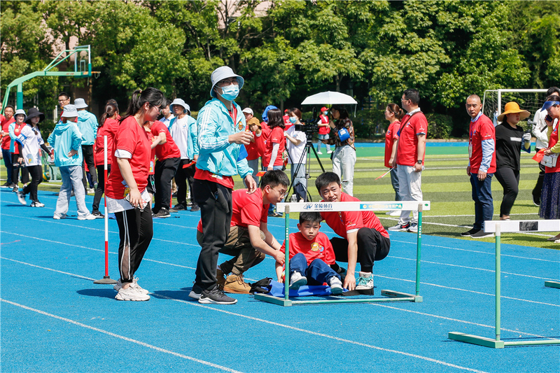 運(yùn)動(dòng)會(huì)正式環(huán)節(jié),星寶家庭、愛心家庭以及志愿者們組成一支支隊(duì)伍,共同攜手參加了滾輪胎、抬擔(dān)架、鉆跨欄架、跳箱、兩人三足等項(xiàng)目的角逐。這些特別設(shè)計(jì)的多人協(xié)作運(yùn)動(dòng)項(xiàng)目為星寶們的心靈打開了一扇窗,讓他們感受合作、交互的溫暖;揮灑汗水的那一刻,星星寶貝們的眼睛在陽光下折射出快樂和自信的光芒。