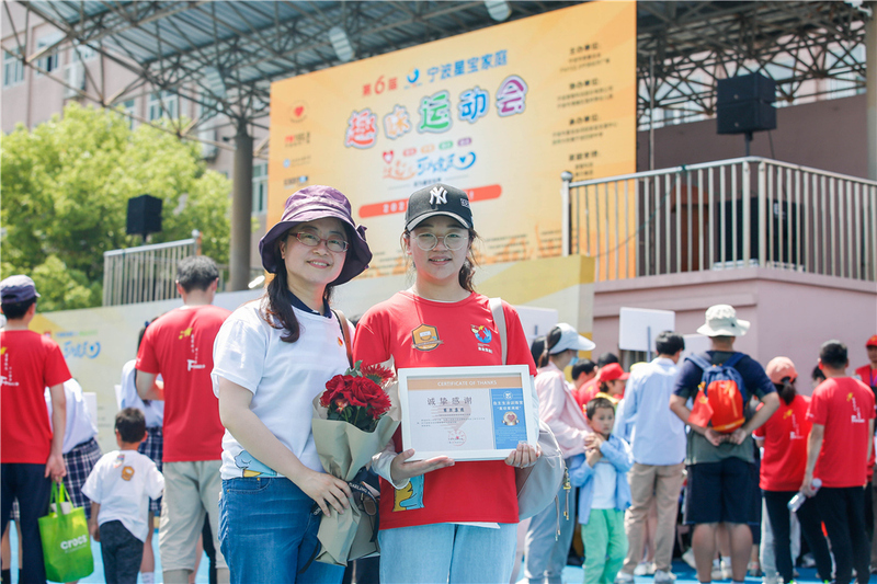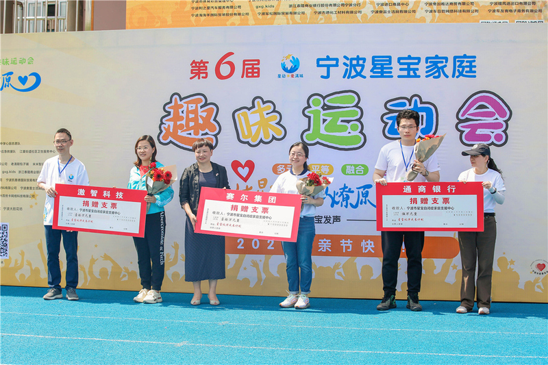 運(yùn)動(dòng)會(huì)上,賽爾集團(tuán)向?qū)幉ㄊ行菍氉蚤]癥家庭支援中心捐贈(zèng)善款40萬元,用于支持星寶自閉癥家庭支援中心開展各項(xiàng)幫助星寶家庭自主生活、融入社會(huì)的活動(dòng)。寧波市慈善總會(huì)副會(huì)長(zhǎng)陳海英女士、寧波市星寶自閉癥家庭支援中心主任馮東等向支持星寶家庭的愛心單位頒發(fā)了感謝證書。