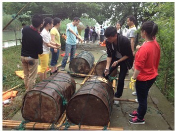 扎竹筏,考驗各位的聰明才智的時候到了!最經典的臺詞:我們組已經順利拿到分數了,在旁邊休息一下,等著看別人落水!
