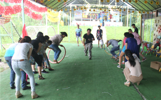 9:20分我們到達開心谷活動場地,在游戲教練的帶領(lǐng)下合影后開始活動熱身,抱團游戲,孩子和家長在一片歡聲笑中很快進入游戲狀態(tài)。我們正式開始第一個互動游戲:破冰起航,家長們報數(shù),重建團隊,通過思想動員,孩子們報隊名、口號,唱隊歌;隊歌不夠響亮的團隊將接受懲罰。第一回合藍隊由于人數(shù)少隊歌嘹亮而旗開得勝。紅隊雖受懲罰,但沒有氣餒,后面的游戲再接再厲,爭取贏得勝利。