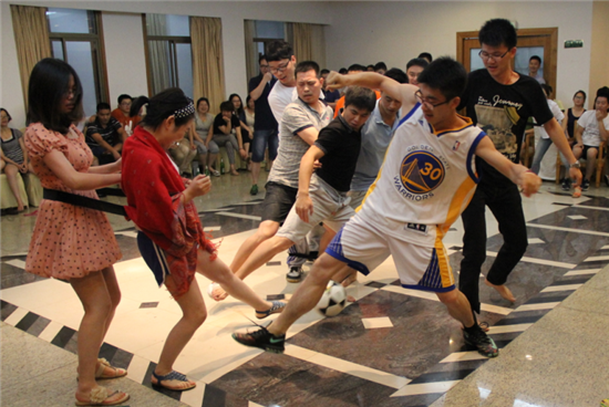 桑巴節激情的音樂此起彼伏,輕松自在的氛圍里,好玩的游戲不斷,比如泡泡糖游戲。參與者聽主持人指示,按主持人所喊人數抱團并且做出規定動作。當超哥和謝總互相“捏“著對方鼻子的時候,我們都笑翻了,主持人也樂了,不斷的強調是“粘鼻子”……Oh my god, 這么緊張時候,誰還分得清是“粘”還是“捏”???