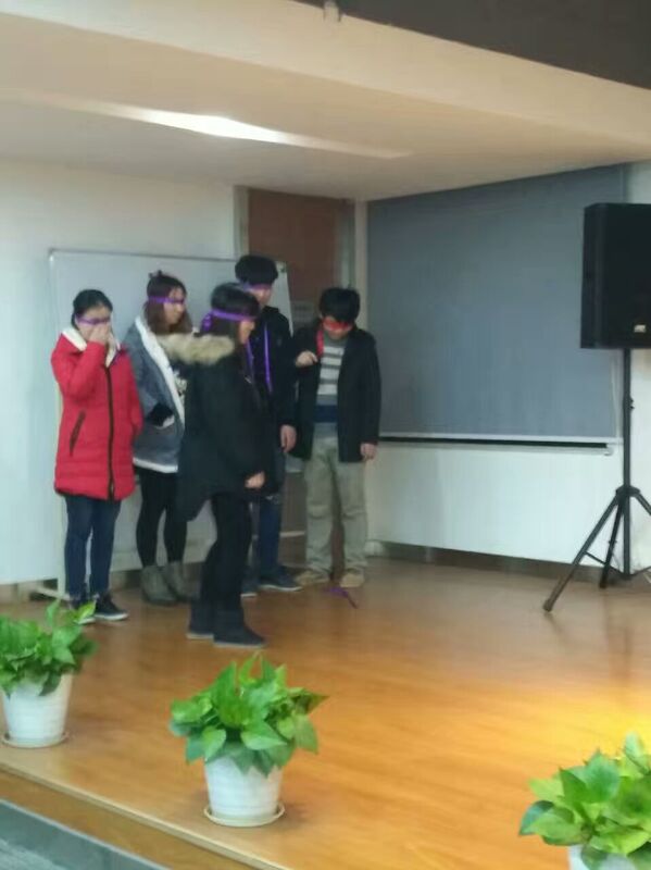 第二個游戲是“蒙眼過障礙”,選了兩名同事蒙住眼睛,其他同事充當(dāng)指揮。被蒙住眼睛的選手在通過障礙時就會做出各種滑稽的搞笑動作,令人捧腹大笑,后來同事們悄悄把障礙物給撤了,但是被蒙住雙眼的同事毫不知情,還是做著夸張的動作,非常搞笑。