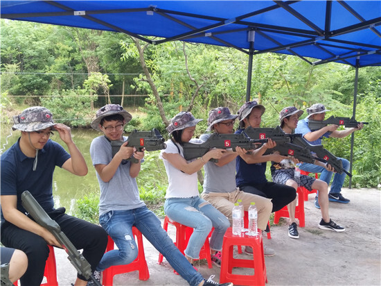 在CS對抗賽中,全副武裝的伙伴們拿著武器,由教練進(jìn)行戰(zhàn)前指導(dǎo),如何正確握槍和如何瞄準(zhǔn)射擊。萬事俱備后,大家分成兩組進(jìn)行對抗賽,戰(zhàn)場硝煙四起,兩組成員分別靠著磚墻搭起的防御墻進(jìn)行躲避和射擊,射中敵人后的歡呼聲此起彼伏。一場真人CS激發(fā)出了大家的熱血和團(tuán)隊(duì)凝聚力,連平時(shí)看起來文靜的萌妹子都大呼過癮。