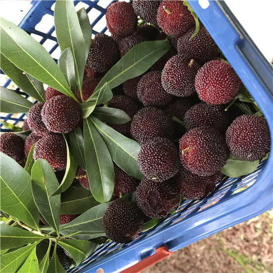 上午10點,我們一行17人驅車抵達余姚梁弄的邱家楊梅基地。放眼望去盡是漫山的楊梅樹,小伙伴們一下車就立馬迫不及待地提籃上山,采摘楊梅。枝頭一顆顆紅得發紫的楊梅,甜中帶酸,刺激著每個人的味蕾。大家一邊摘一邊吃,籃子里始終滿不起來。很快大家被楊梅填滿了肚子,索性也不摘了,直接到山下選一籃專業師傅摘得黝黑黝黑的楊梅。