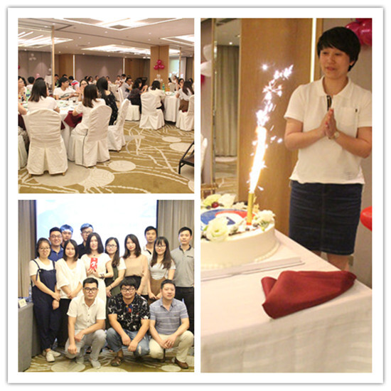 晚宴開始,大家齊唱生日歌,一起慶祝GREEN TIME的一周歲生日,三位七月的壽星同謝總一起切蛋糕。各部門同事積極為綠時獻唱,最終在陳為的一曲《喜歡你》中結束了本次年中會議。