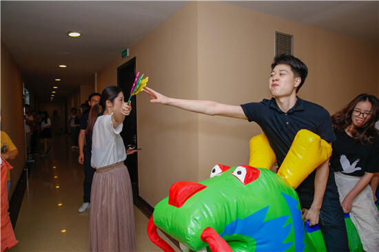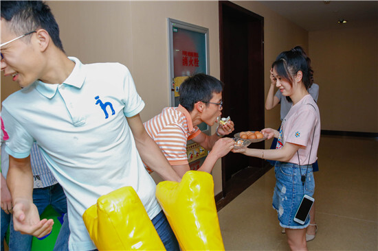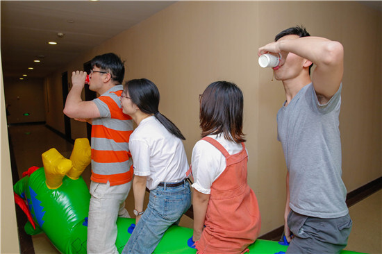 游戲規則為四人一組,2男2女,策劃組的小心思也真是一套一套的~喝可樂、塞雞蛋、啃冰棍……各種關卡,你們做的很好!
