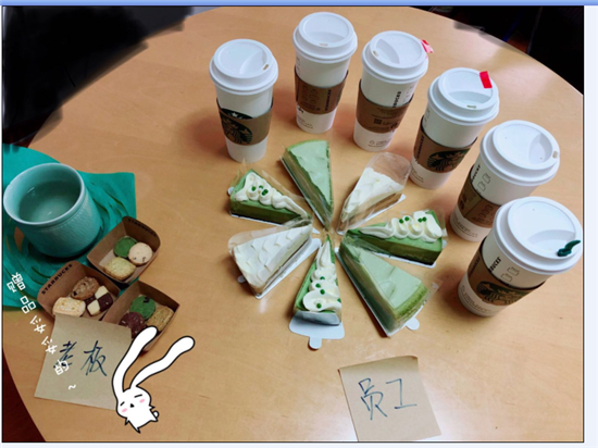 第一響來自星爸爸~派了毛毛姐和徐靜小姑娘充當“快遞小妹”。這是第幾次星爸爸下午茶,小編有點記不太清了。唯一不變的是張總自己依舊沒分,喝的還是自己泡的小青柑?然后,被一堆贈送的小餅干包圍。