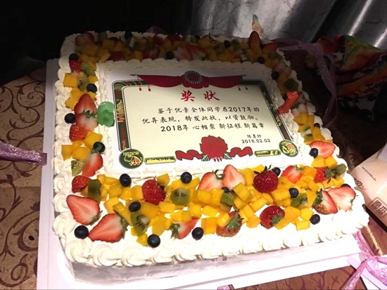 中場時間,工作人員端上了6周年蛋糕,陳勇珍副總裁還特別為此題了字,表達了對優(yōu)景大家庭在2017年取得驕人業(yè)績的肯定以及2018的新年祝愿。蛋糕趴結(jié)束,Bose音響、掃地機器人、空氣凈化器、電子閱讀器、行李箱,還有金額不等的紅包就上場啦,讓大家拿獎拿到手軟,晚會的氣氛也一直處于高潮中。最后,侯總還額外增加了特等獎,以鼓勵大家更加努力,團結(jié)奮進,再創(chuàng)佳績。