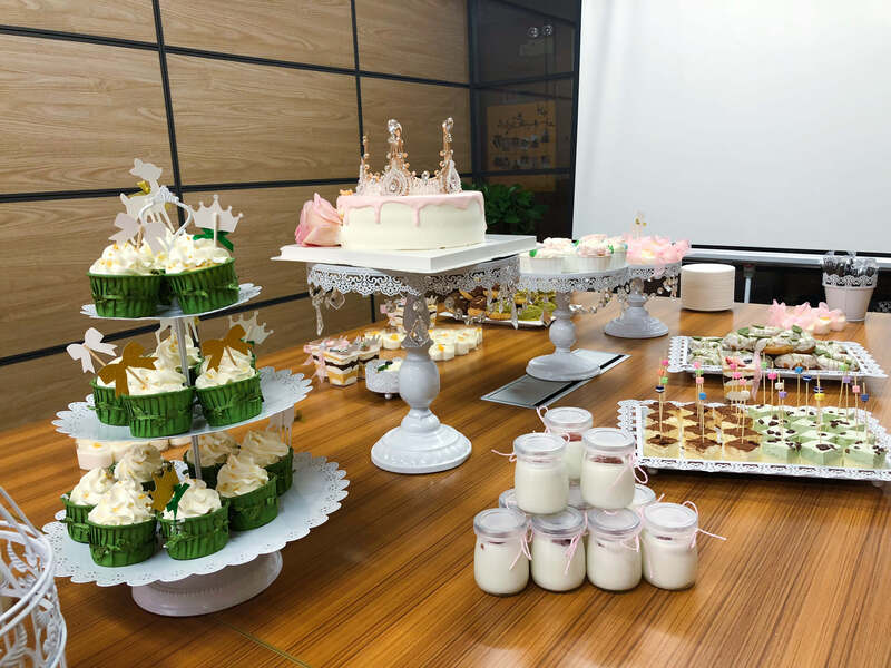 當(dāng)女生們還沉浸在收到鮮花禮品的喜悅中時(shí),精美的下午茶便出現(xiàn)在大家眼前,數(shù)十種甜品,加上車?yán)遄硬葺芄系雀鞣N水果,惹得集體男同胞們羨慕不已。幾分鐘后,所有美食被一掃而空,真是滿足。