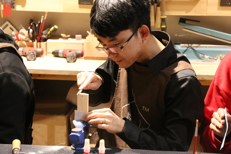 這是一個明媚的上午,我們齊聚在一家充滿文藝氣息的小店里,店里擺設著各式各樣的手工雕刻作品。大家各自選好了想要做的作品,然后穿上了美美的圍裙,這一刻,請叫我們“傲嬌的小木匠”。整個制作過程中,大家耐心細心地打磨著、探討著、組裝著。在這歡聲笑語的氣氛中,大家暫時忘掉了煩惱,專心致志地完成自己的作品。完成作品之后便是愉快的午餐時間,大家互相聊著工作和生活中的點滴趣事。