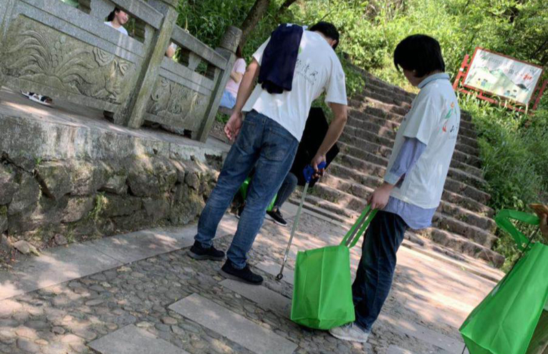 到達(dá)目的地后,大家拿到工具便開(kāi)始了步行。得益于前兩次的山野清風(fēng),我們這次一路走來(lái)并沒(méi)有發(fā)現(xiàn)很多垃圾,只有路邊和歇腳的涼亭能發(fā)現(xiàn)少許垃圾。