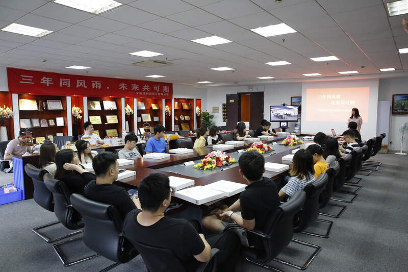 為了慶祝這一喜慶的日子,綠時舉辦了一場三周年慶交流會暨團建活動。當天下午的交流會于寧波18樓1802會議室舉行,義烏員工以視頻方式一同參會。會議伊始,綠時為每一位員工準備了豐富的水果、甜點和飲品,并為每個綠時人分發(fā)了帶有公司logo的小米體脂稱,真可謂“吃飽喝足干勁足,勞逸結(jié)合創(chuàng)佳績”。