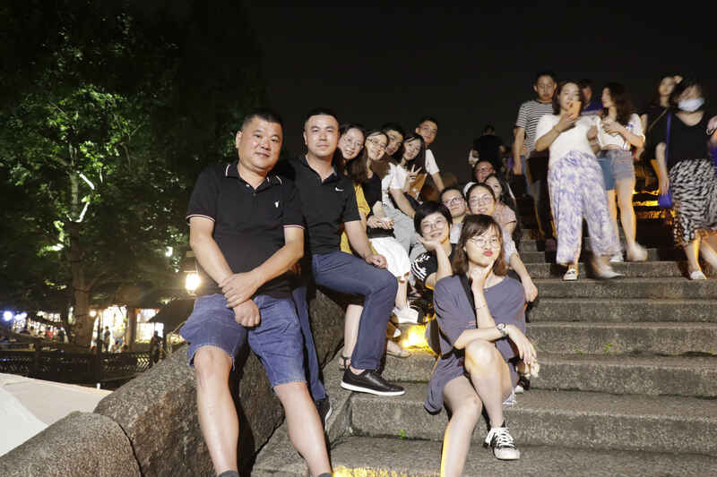晚飯后,伙伴們集體乘坐搖櫓船夜游烏鎮(zhèn),欣賞沿途點(diǎn)點(diǎn)燈光,小橋流水,晚風(fēng)徐徐,兩邊的商店古建筑和小河中的綽綽樹影相得益彰,閑適得讓人不舍離去。