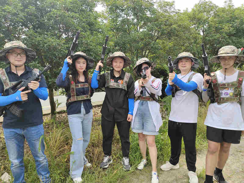 看完瀑布之后,我們迎來了此次團建的高潮——CS真人賽,四位隊長各立軍令狀,兩兩PK。守方在場地內埋伏好,等待攻方進入陣地。兩隊要在最短的時間內進行戰斗“廝殺”,“消滅”對方。戰斗結束,大家熱得滿身是汗,卻還意猶未盡,興奮之余也對團隊有了更深的了解。