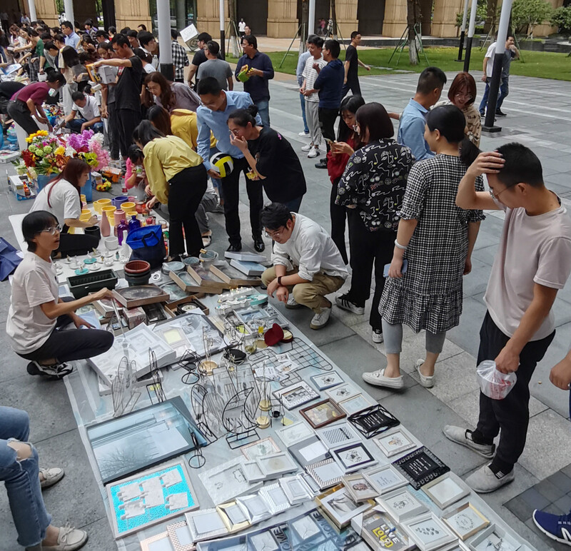 我們根據產品的屬性以及價格,將攤位進行分區,將人員進行分組,設定對應需要售賣的產品種類,這樣可以清晰自己的產品性能以及銷售價格。我們的產品種類豐富,有玩具、相框、鐵藝擺件、掛鐘、花盆、香薰蠟燭等,售價在5元到30元不等。銷售的形式也不僅僅限制于線下,還結合了線上的銷售,場面相當的火爆。顧客們本著“不買就仿佛錯過一個億”的原則,踴躍搶購,有些甚至需要用箱子才能裝下自己買的產品。大家滿載而歸,我們也收獲頗豐,還額外get了一位對優景有意向的求職者。
