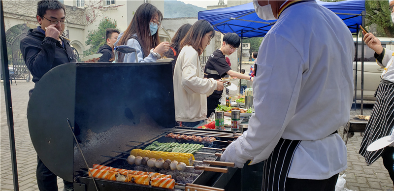 沒過多久,遠處便傳來了陣陣香氣,各種豐盛的燒烤美食已悄然奉上。桌面上堆滿了各式各樣的酒水飲料,供大家隨意品嘗。