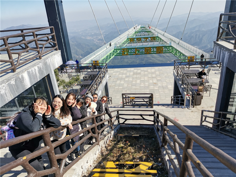 第二日早晨9點(diǎn),我們披著溫和的日光前往云上草原滑雪。奈何功課沒做全,落地便選了一條錯(cuò)路,以至于一門心思想滑雪的我們?cè)趹已虑捅谏媳P旋了一整個(gè)上午。好在壁上風(fēng)景絕佳且打卡點(diǎn)眾多,腳下無窮的階梯似乎也變得沒那么困難了。兜兜轉(zhuǎn)轉(zhuǎn),到達(dá)滑雪場已經(jīng)下午2點(diǎn)多,我們稍微體驗(yàn)了下雪場的速度與激情便心滿意足地回程了。