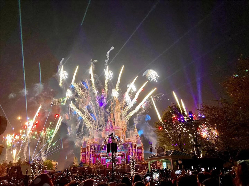在夜晚觀賞一場(chǎng)煙火秀是迪士尼的必選項(xiàng)目,看著五彩的煙花在天空中綻放,彼時(shí)彼刻的心靈得到了治愈,一天的疲憊感也在這一瞬消散。