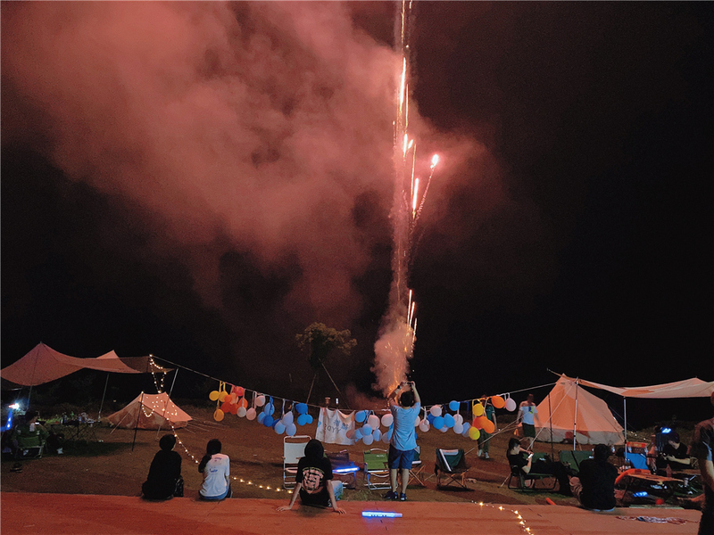 酒足飯飽后,“追光吧!貔貅!”音樂節由一場美麗的煙花秀作為開場,臺上各組的麥霸與歌神互相較量,你方唱罷我方登場,神仙打架。臺下的人化身為小粉絲,跟著音樂節奏互相揮舞著應援棒,享受著音樂帶來的狂歡之夜。