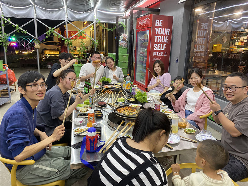 晚上,我們?cè)诿袼薷浇臒镜杲鉀Q了晚餐,點(diǎn)了一桌美食,同事們拋開工作中生活中的煩惱,暢聊了起來。