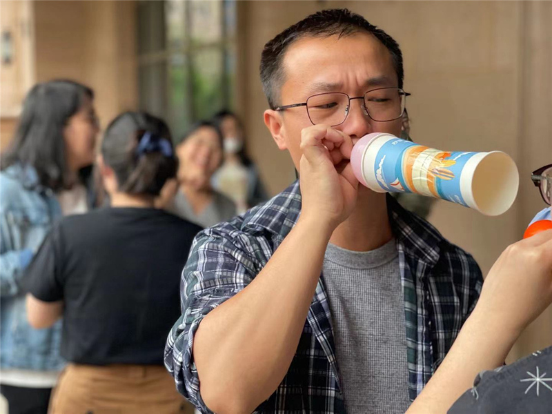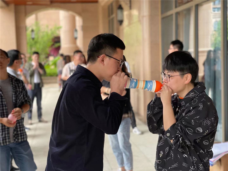 第二天又下起了小雨,我們只得取消原定景點,在酒店中進行了團建游戲??简炇帜_協調、平衡能力的“手忙腳亂”,讓大家真正體驗到了手腳并用的感覺;需要相互配合,相互溝通的“紙張傳遞”,大家八仙過海各顯神通,有摩擦頭發試圖產生靜電的,有悄悄沾點水增加粘性的,而裁判都睜只眼閉只眼,畢竟大家開心才是最重要的。經過兩輪的角逐,兩隊打成平手,最終A隊在最后一局的“氣球接力”中獲得了游戲的勝利,同時也收獲了紅包。