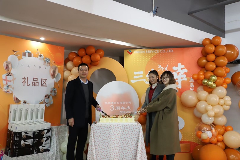 火辣的舞蹈、動人的歌喉、真情的流露,讓這場慶典變得精彩和感動。5位美麗的小姐姐帶來的開場舞,瞬間點燃全場。隨后,優騰公司總經理徐生科、外銷一部總監饒思斯、外銷二部總監陳靜一起上臺分切3周年慶典蛋糕。徐總在致辭中帶領大家回顧了前兩次的周年慶典,感慨時光荏苒,優騰在一年年地成長壯大,并表示期待大家帶來更精彩的三周年慶典。