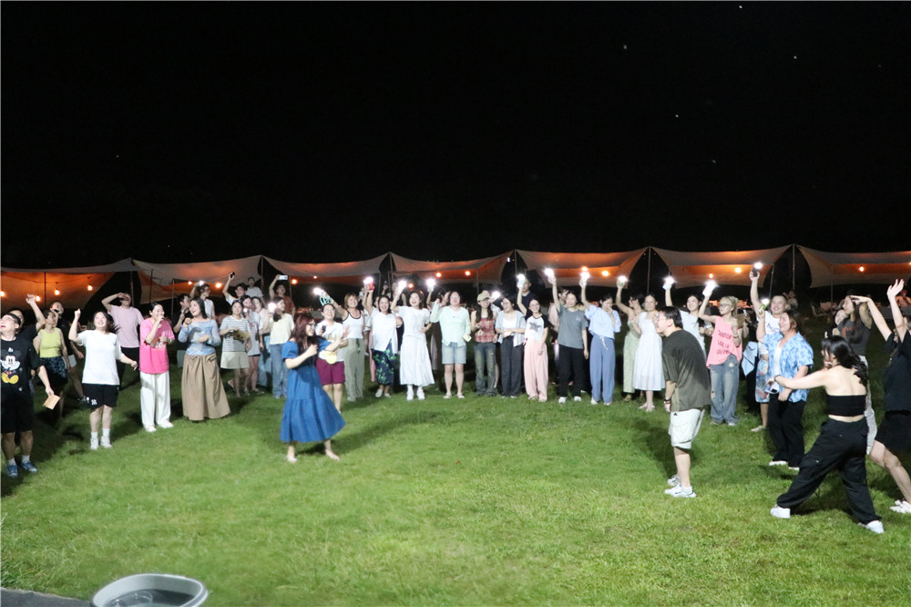 8月3日,我們集體乘車前往北侖,開啟了2天1晚的年中團建。抵達場地,用過午飯之后迎來第一場競技運動——旱地冰壺。冰壺被稱為“冰上國際象棋”,展現(xiàn)的是動靜之美與取舍的智慧。球場變化莫測,需要參與者將個人能力和團隊目標績效進行高度匹配,否則瞬間就會被對手逆風翻盤。在長達2個小時的比賽后,大家興奮不減,一路探討著回到酒店,整休等待晚上的草地露營音樂節(jié)和巴西BBQ。燒烤、牛排、全羊、小龍蝦、天幕、音樂,卸下一天的疲憊,大家或促膝長談,或雙手舉過頭頂和喧囂一起被點燃,猜歌名、跳圈,各種小游戲使得現(xiàn)場的氣氛跟草地一樣滾燙,激昂的潑水迪更是將現(xiàn)場的氛圍達到了頂峰。音樂只是形式,相聚才是目的,在優(yōu)鼎,每時每刻,回頭都有一路的故事。