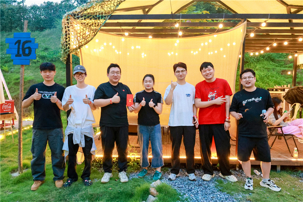 迎接我們的首先是清新的自然空氣和美麗的山水景色。午餐時間,大家圍坐在一起,共同享受了精心準(zhǔn)備的燒菜和烤全羊盛宴。下午,大家參與了充滿挑戰(zhàn)和趣味的團(tuán)體活動闖關(guān)。各組成員在活動中通過分工合作、互相配合,發(fā)揮出各自的特長,成功完成了多個任務(wù)。在團(tuán)建晚餐剛剛開始的時候,現(xiàn)場突然燈光一暗,音樂響起,生日蛋糕緩緩端上來。伴隨著同事們的掌聲和生日歌,壽星臉上露出了驚喜又感動的笑容。晚餐后,有的成員選擇了與朋友高歌一曲,盡情釋放壓力;有的成員則聚在一起玩起了桌游,在輕松愉快的氛圍中加深了彼此的了解。