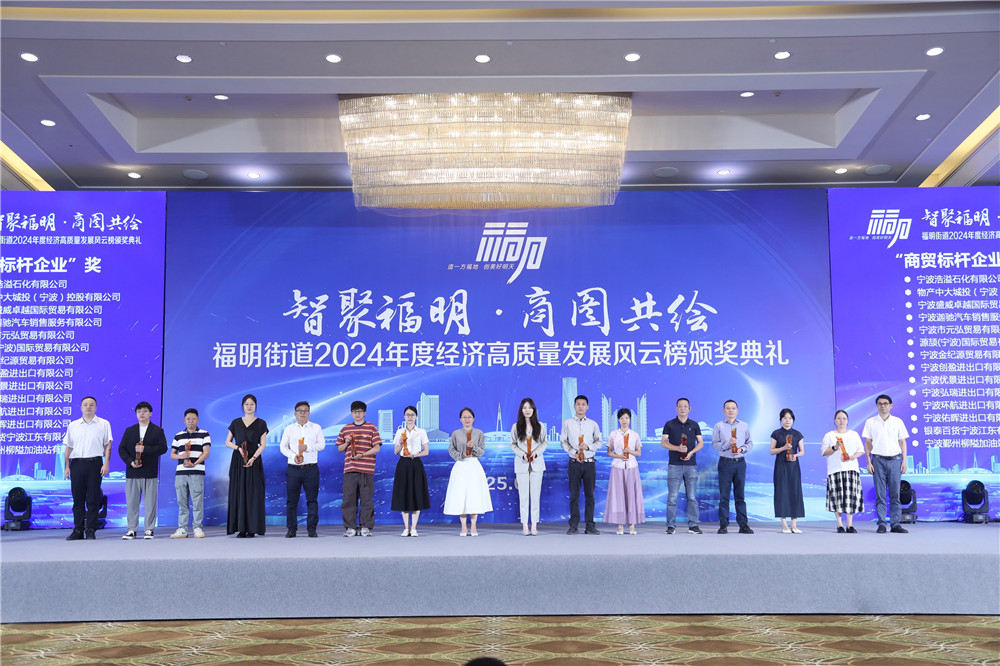 2025年5月30日,“智聚福明·商圖共繪”——福明街道2024年度經(jīng)濟(jì)高質(zhì)量發(fā)展風(fēng)云榜頒獎(jiǎng)典禮隆重舉行。鄞州區(qū)科技局局長、黨組書記虞文平,鄞州區(qū)委組織部副部長、區(qū)委人才辦常務(wù)副主任任甘、鄞州區(qū)福明街道黨工委書記劉剛等領(lǐng)導(dǎo)出席典禮。