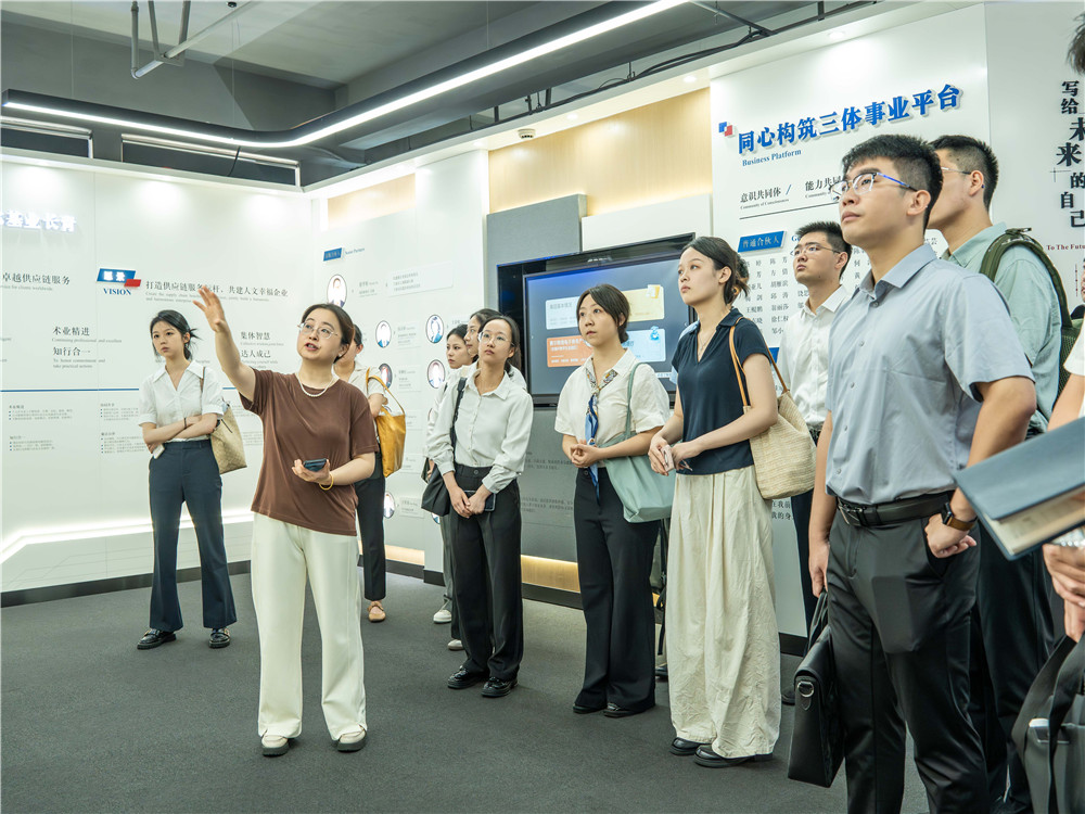 代表團首先參觀了賽爾集團企業文化展廳與產品展示中心。在集團總裁助理朱玲的細致講解中,代表團深入了解了賽爾的企業文化、發展歷程、全球業務布局、生態圈建設以及在外貿創新領域的多項實踐成果。何東風主任鼓勵青年員工認真學習賽爾在管理體系、市場策略和組織架構等方面的先進經驗,將所見所學轉化為日后服務外貿企業、支撐實體出口的實際能力。