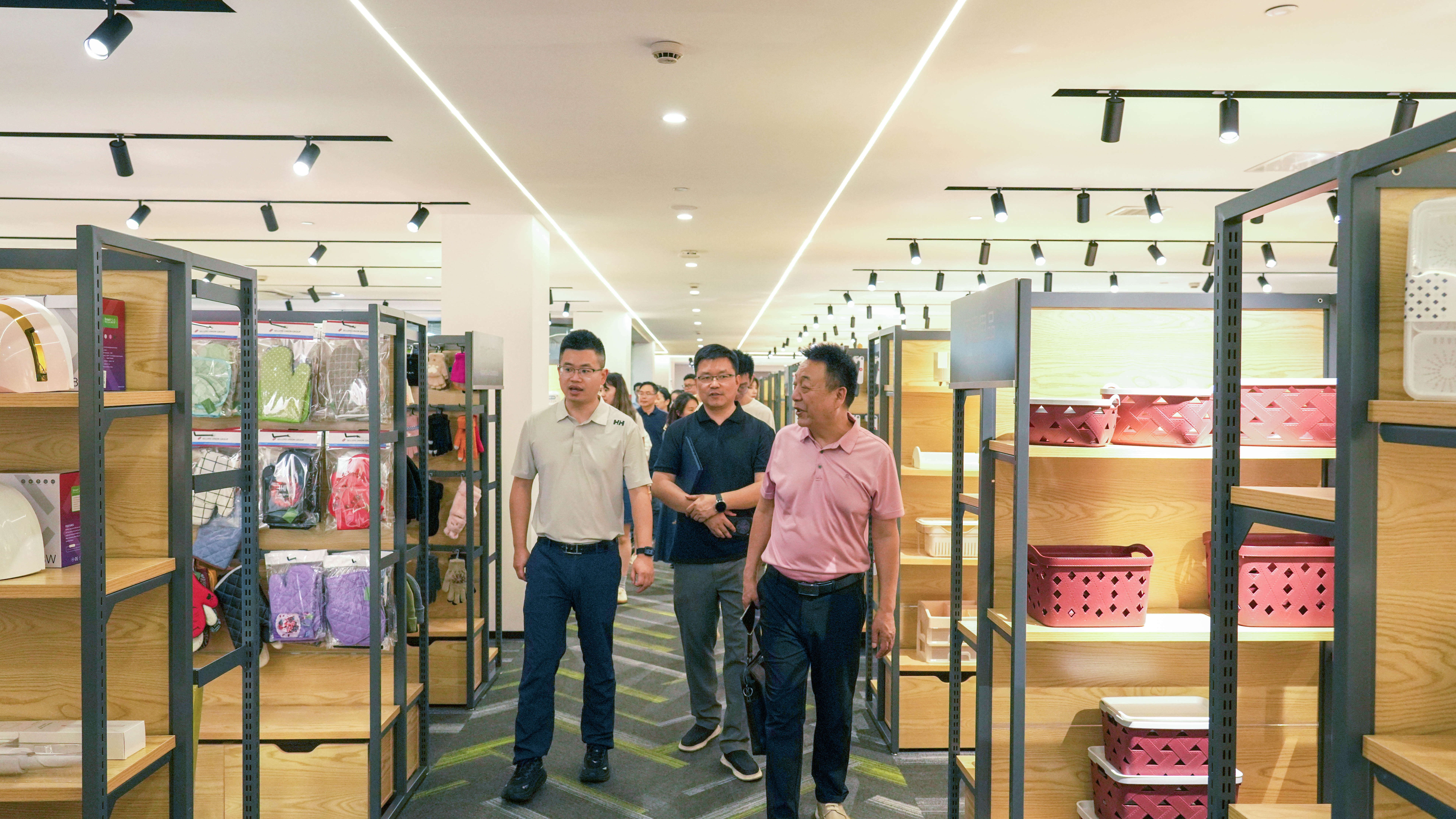 參訪團一行首先參觀了企業文化展廳和產品展示中心。孟祥龍總經理詳細介紹了集團的發展歷程、業務生態,直觀展示了各類產品的工藝細節與創新設計。參觀結束后,吳金財經理就集團在跨境電商供應鏈體系建設和數字化服務方面的優勢進行了簡要介紹。與往屆活動不同,本次交流會特別延長了自由對接環節,為企業提供了更充分的溝通機會,現場氣氛熱烈,成果顯著。來自集團優越東吳、綠時、倍優、優遠等多家公司的業務骨干們與企業代表們自發形成多個討論小組,圍繞近期熱點話題展開深入交流。