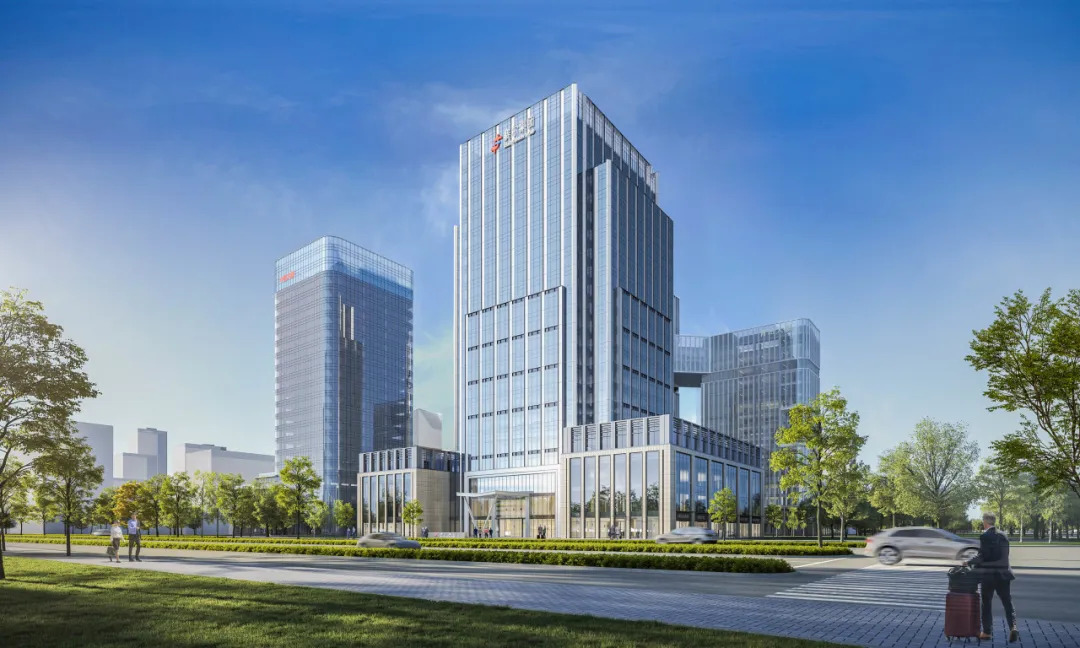 賽爾集團義烏總部大廈地處城市主干道商城大道和口岸路交叉路口,毗鄰義烏國際商貿城、國際物流港、幸福湖植物園等城市重點區(qū)塊,公共交通便利、周邊配套完善,資源虹吸和輻射效應強。總部大廈地上21層高95米,由4層功能性裙樓與17層辦公主樓組成,總建筑面積約7.5萬平米,將集商務辦公、產(chǎn)品展示、文化展廳、企業(yè)孵化、會議中心等功能于一體,可容納約2000名員工辦公,計劃于2026年正式投入使用。