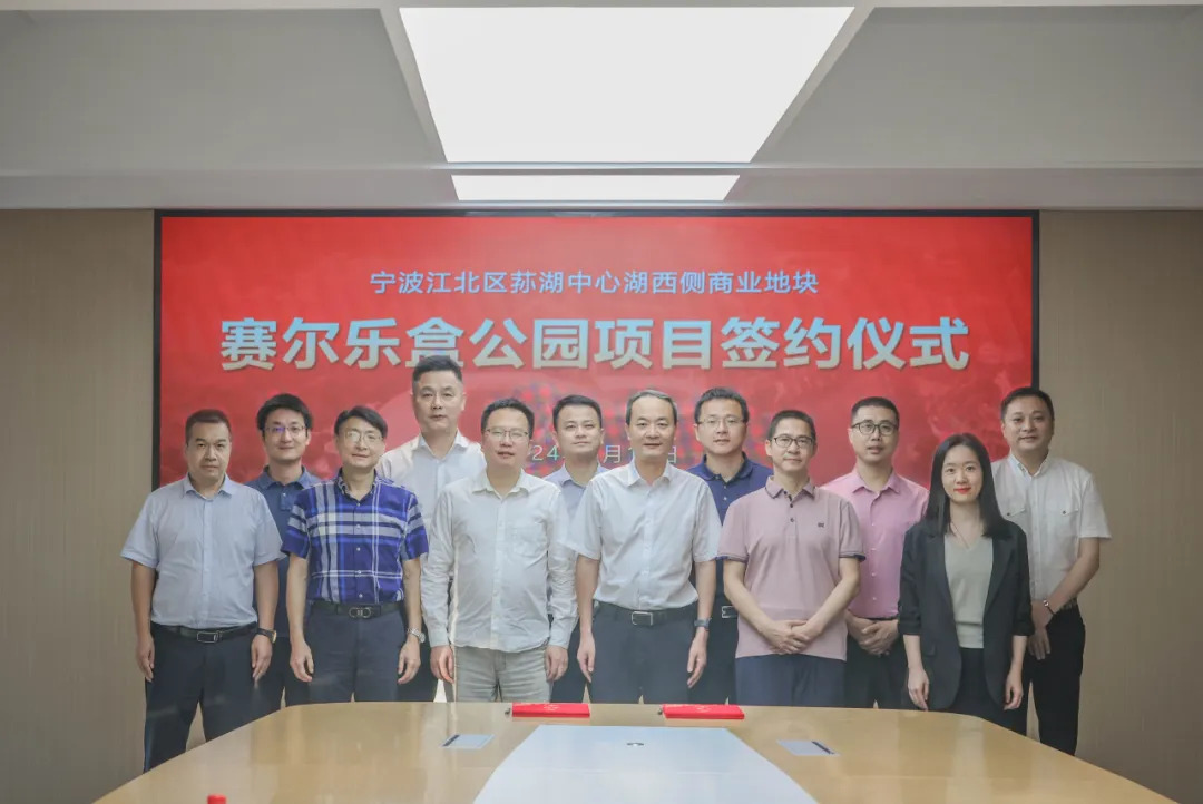 6月12日下午,賽爾集團(tuán)與寧波市江北區(qū)人民政府舉行樂盒公園地塊投資協(xié)議簽約儀式。江北區(qū)政府副區(qū)長余擁鋒、區(qū)府辦副主任吳侃、區(qū)文廣旅游局局長周少植、市自然資源和規(guī)劃江北分局副局長羅森、區(qū)住建局副局長陳統(tǒng)桂、洪塘街道黨工委書記陳海源、洪塘街道辦事處副主任余慶豐、洪塘街道辦事處一級(jí)主任科員龔曉喜,賽爾集團(tuán)董事長徐平炬及馬科成、張孝偉、方芳、王駿、鄔佳毅等公司高管共同出席簽約儀式。