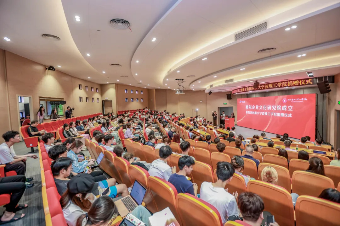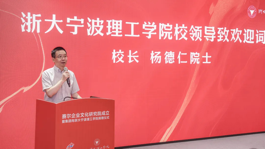 6月19日下午,賽爾企業文化研究院暨集團向浙大寧波理工學院捐贈儀式在學院啟新講堂隆重舉行。寧波市甬商發展研究會會長、原寧波市政協副主席張明華、寧波市政府研究室主任張健、寧波市工商聯副主席吳益統、寧波市商務局二級巡視員陳利珍、寧波市貿促會副會長徐海峰、中國科學院院士、浙大寧波理工學院校長楊德仁、浙大寧波理工學院黨委委員、副校長魯東明、賽爾集團董事長徐平炬,以及賽爾企業文化研究院專家、企業家代表、浙大寧波理工學院在校師生、賽爾集團部分高管和生態圈企業負責人、賽爾在職的理工校友等200多人出席并參與此次活動。